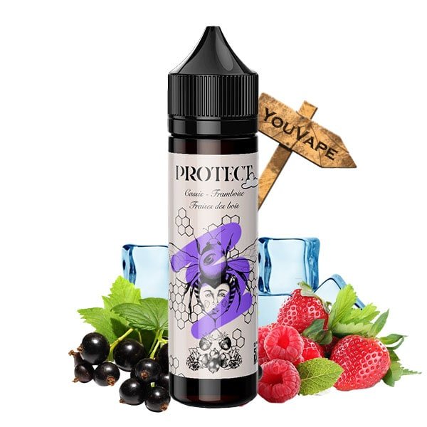 Le e liquide Cassis Framboise Fraises des Bois de Protect vous invite à déguster un cocktail rafraîchissant de fruits des bois bien givrés,