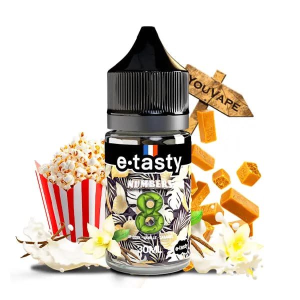 L’arôme concentré Numbers 8 30ml de Etasty est un plaisir gourmand garni de pop-corn au caramel et d’une délicate touche de vanille.
