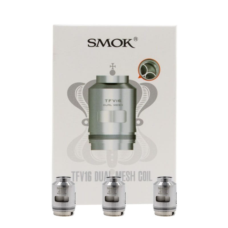 Le clearomiseur TFV16 utilise des résistances en mesh, un matériau qui produit une vapeur dense et renforce les saveurs. Leurs larges ouvertures sont conçues pour bien imbiber le coton avec des eliquides au fort taux de VG. Smok propose plusieurs modèles, à choisir selon vos préférences en termes de puissance et sensations.